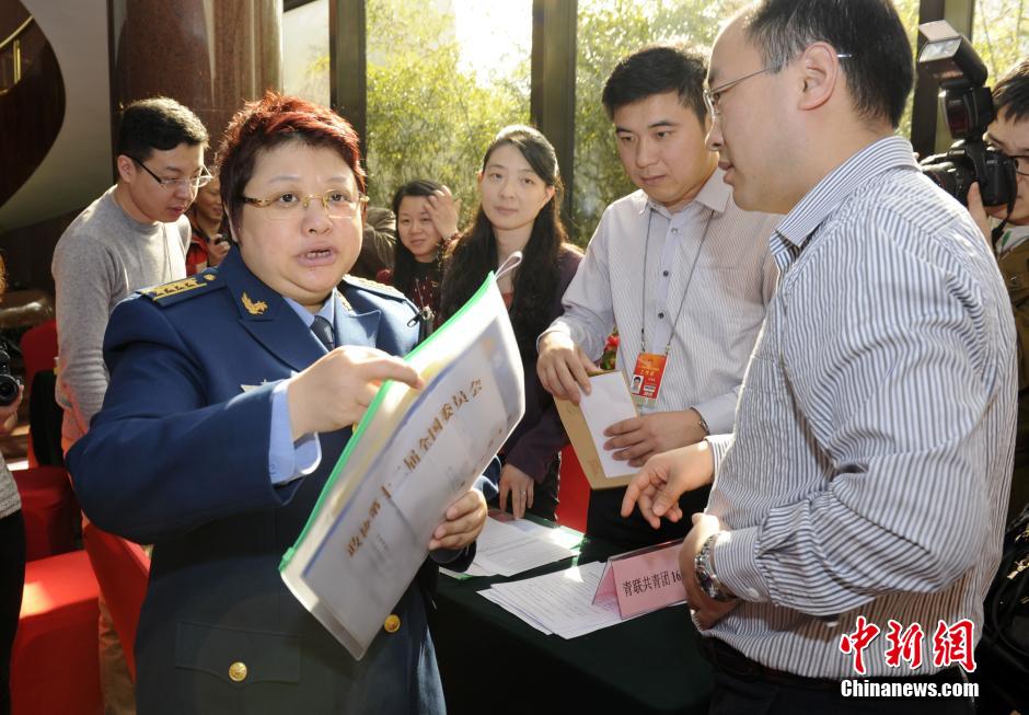 3月2日,参加全国政协十二届三次会议的政协委员、天津市侨联副主席潘庆林在驻地接受记者采访。中新社发 张斌 摄
