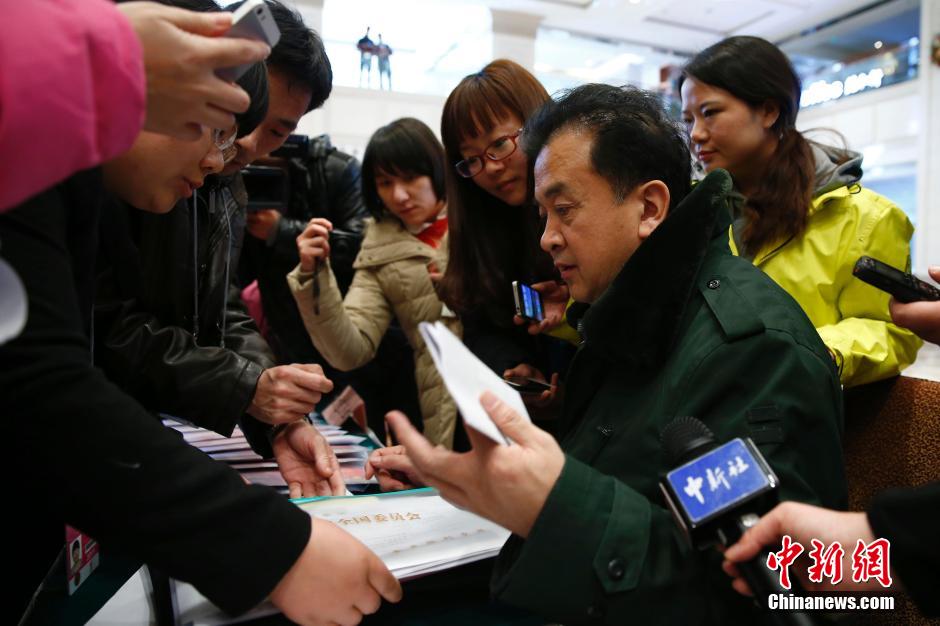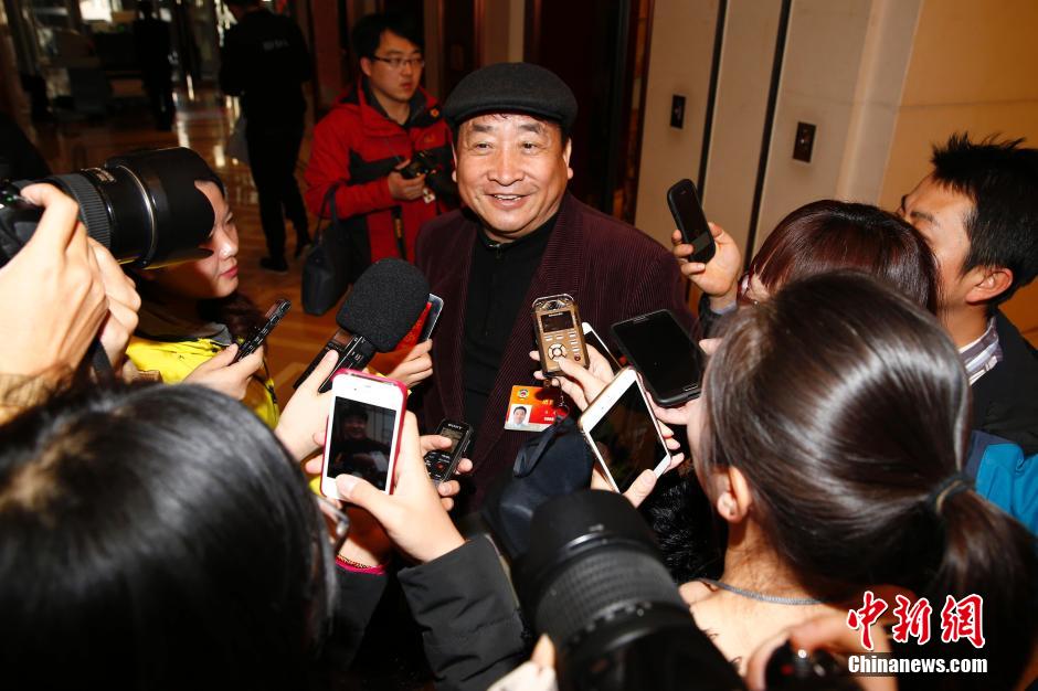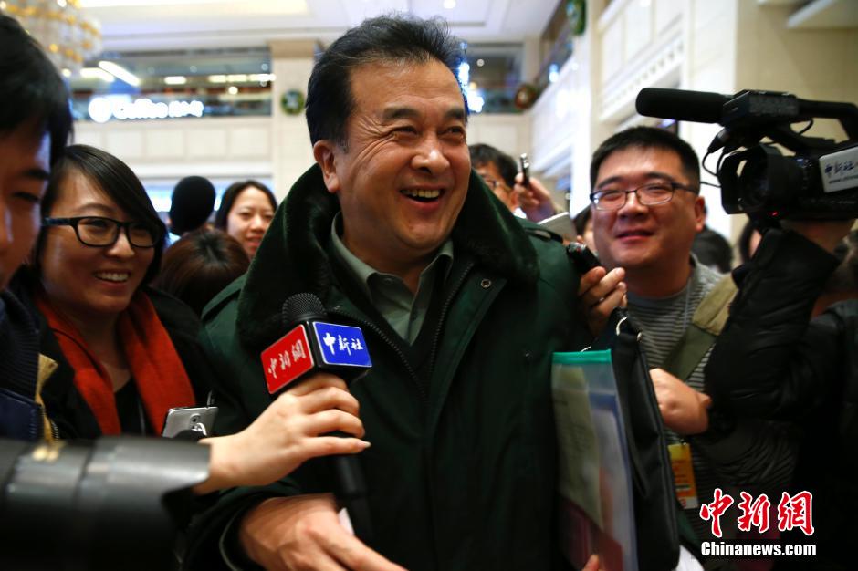 3月2日,参加全国政协十二届三次会议的委员张华荣在驻地接受记者采访。中新社发 张斌 摄