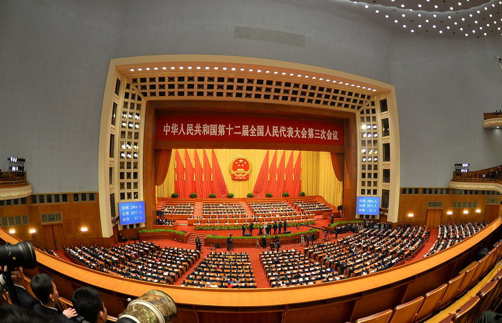 3月15日,第十二届全国人民代表大会第三次会议在北京人民大会堂举行闭幕会。会场全景。新华社记者 陈建力 摄1