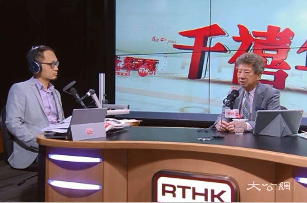 行政会议成员汤家骅(右)今日出席电台节目,指大律师公会声明对全国人大常委会不公平及不尊重