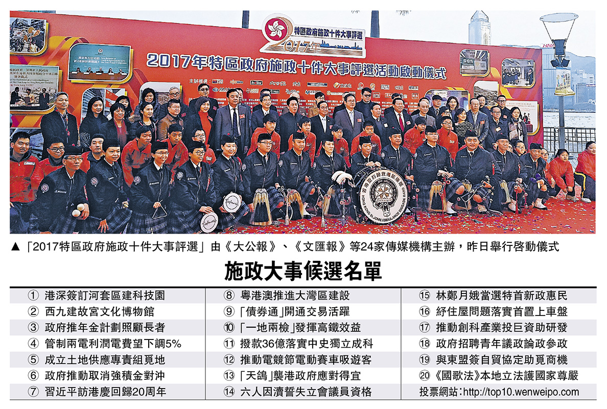 施政十件大事评选启动 “一地两检”“天鸽”入围