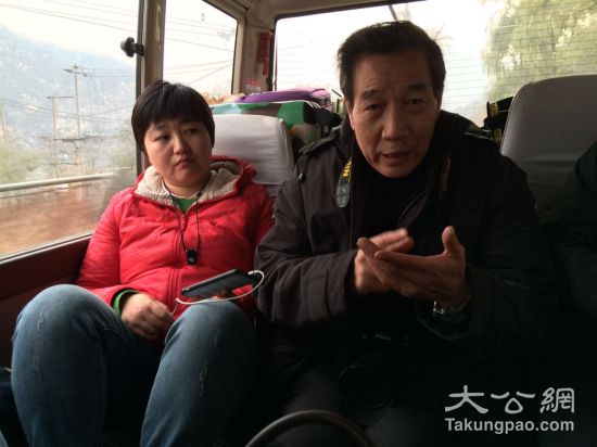 在行驶的大巴上,此次写生团的重要成员之一、长安画派艺术研究院常务副院长魏高良接受记者的采访。大公网记者李晓蓉摄