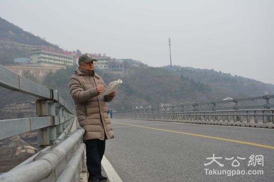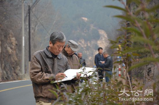 "画"无定所,斜倚着公路边的护栏,70多岁的赵振川在写生。大公网记者 李晓蓉摄