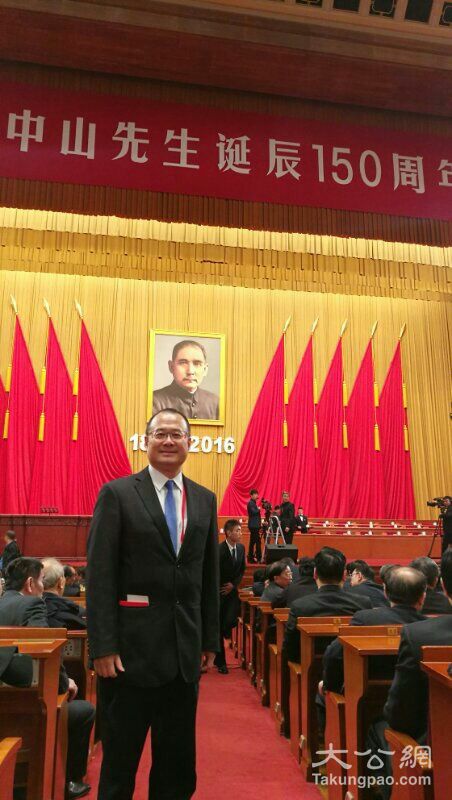 全国政协教科文卫体委员会副主任、香港中华总商会会长、香港新华集团主席蔡冠深在纪念孙中山诞辰150周年大会上。受访人供图