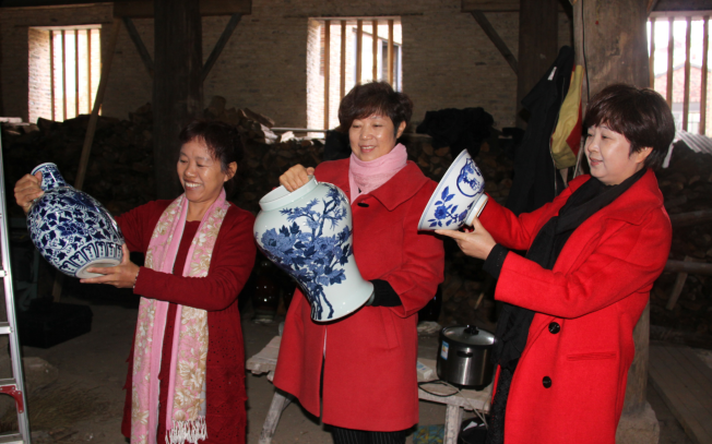 开窑当日,一件件瓷器在窑口处揭开神秘面纱,绽放出明快的色彩、剔透的光泽,引来现场阵阵叫好声。原建国瓷厂党委书记、现徐家柴窑复建复烧总指挥余喜来抱着一件刚出窑的青花瓷,爱不释手,得意地说:“这就像抱着一个大美人!”他说,这批烧制的瓷器达数千件,师傅们在烧制之前仅码放瓷器就花了7天时间,在烧制之后取出瓷器又要花3天时间。73岁的把桩师傅胡家旺难掩喜色,他说:“这次瓷器烧制出来的效果非常好!从目前来看,成功率应该在70%以上,是在我的经验范围之内。说实话,在没有开窑之前,我心里还是有点七上八下的,现在终于可以放下心来了!”为了庆祝这一特殊的日子,58岁的章细莲、56岁的游景秀、54岁的刘国贞(当年建国瓷厂最美的三朵姐妹花)不约而同地穿起红衣,早早过来等待开窑。当看到高品质瓷器出窑,姐妹仨你一言我一语地畅怀聊天,还抱着她们创作的青花瓷合影留念。刘国贞称:“我们三姐妹从16岁开始进厂当学徒画青花,到如今退休返聘,一直都是在建国瓷厂上班。在最近半年多的时间里,我们仨共绘制了100多件青花瓷。我们完成了一项很光荣的任务,好开心!”