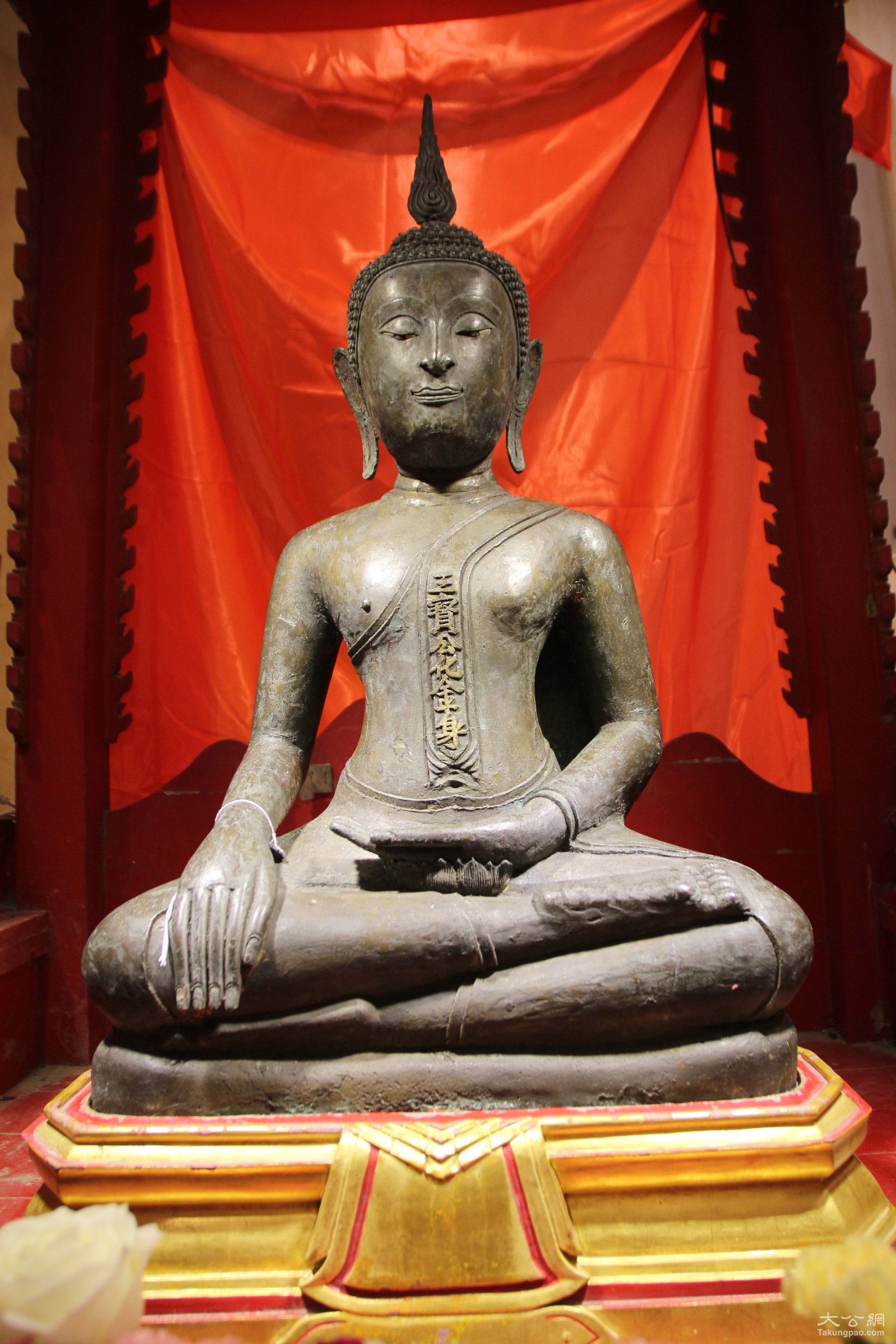 郑和船队曾两次访问暹罗(今泰国的古称)。在阿瑜他耶城访问时,受到阿瑜他耶皇朝的优待和城内华人的热烈欢迎。当地华侨尊称郑和为“三保太公”,并建“三保公寺”纪念,数百年香火不断。泰国东盟-中国贸易促进会秘书长麦可·藏认为,这尊铸有中文字“三宝公化金身”的佛像是来自600年前的暹罗首都阿瑜他耶的帕楠成寺(Wat Panaman Choeng),也叫三宝公寺。这尊佛是寺内14米宽、19米高大佛的缩小版。寺内的大佛始建于14世纪初,由华人所建,而泰国人称为之为三宝佛公或Trai Ratana Nayok,或者是Long Pao Dod。Trai Ratana,是巴利语,在佛教中指佛、法、僧三宝。而三宝又刚好与郑和的名字三保同音。所以,有很多人认为,三宝佛公就是郑和的化身。对此,麦可·藏有两种理解: 1,这可能是郑和出金重修帕楠成寺佛像,或出资造佛供养所留下名字的巧合。因为作为佛教徒的郑和,有供养修寺造佛造塔的习惯。2,后世的华人为纪念郑和,所出资重修的寺院或出资铸造的佛像。