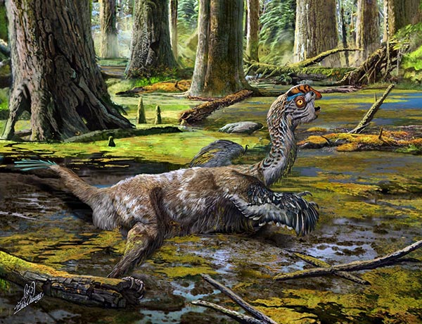 吕君昌说,窃蛋龙类,长相酷似平胸鸟类,多分布在北美和亚洲,这类长羽毛恐龙的体态大小一般为3米左右,但是体态巨大的很少,原始类群具有牙齿,而进步类群牙齿退化缺失,可能只靠吃小型动物,比如蜥蜴类、蛋类、昆虫、植物和坚果等为生。区别于其他窃蛋龙类,“泥潭通天龙”的生活习性类似鸵鸟类,进步的类群没有牙齿,头短而高,有的头上有冠,用以吸引异性,圆顶状头骨最高处位于眼眶后背角上方,前上颌骨的前边缘高度凸起。系统发育分析显示,“泥潭通天龙”与同样发现于赣州地区的斑脊龙关系密切。