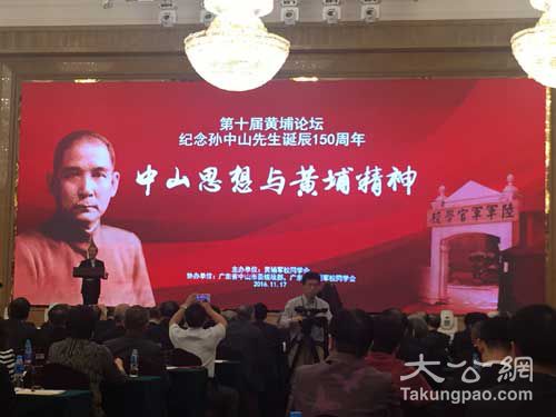 大公网11月17日讯(记者 任一龙)11月17日,由黄埔军校同学会主办,中山市委统战部、广东省黄埔军校同学会协办的纪念孙中山先生诞辰150周年第十届黄埔论坛,在孙中山先生的故乡广东省中山市举行。