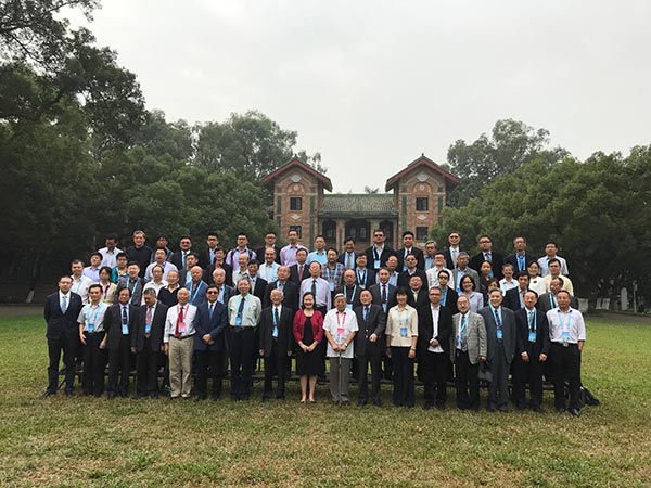 参加中山论坛的两岸四地学者在中山大学怀士堂前合影。