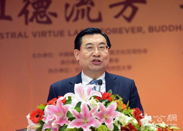 国家宗教事务局局长、中华宗教文化交流协会会长王作安致辞。(记者李阳波摄)