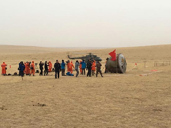 大公网11月18日电(记者乔辉、王月)今日下午,神舟十一号返回舱顺利安全着陆。此次没有落在素有“神舟家园”之称的乌兰察布四子王旗,而是落在了锡林郭勒苏尼特右旗,两地相差200公里左右,出乎所有人的预料。