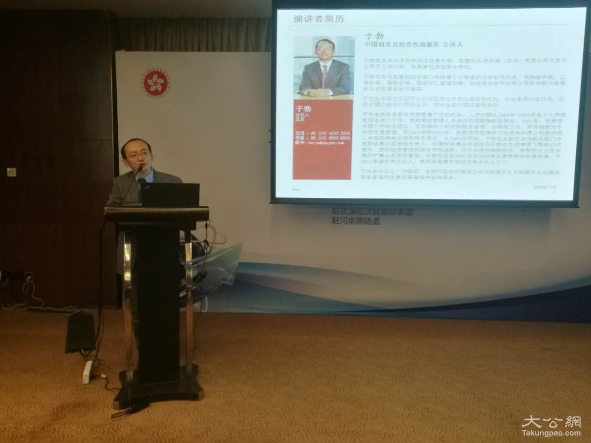 大公网11月20日讯(记者刘蕊)为帮助在内地的香港企业更好地理解和适应税务、创业创新及网络零售方面的新政策,把握商业机遇,香港特区政府驻武汉办于长沙市、武汉市、郑州市等三地举办相关议题的研讨会。