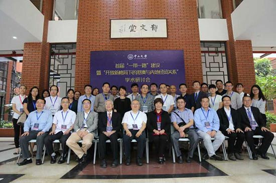 中山大学原党委书记、粤港澳发展研究院院长郑德涛教授和中山大学副校长李善民教授出席会议并致辞。在“‘一带一路’建设与构建对外开放新格局”专题中,中山大学粤港澳发展研究院教授、自贸区综合研究院副院长毛艳华认为,推动“一带一路”建设要加快实施自由贸易区战略,构建立脚周边辐射“一带一路”沿线的自由贸易区网络体系,并运用政治经济学理论方法分析了自贸区建设的影响因素,提出要加强政府间沟通和民间交流、优先考虑较少受到本地政策干扰的区域、通过基础设施和培训来改善要素流动性,以及构建自贸协定包围网等措施。