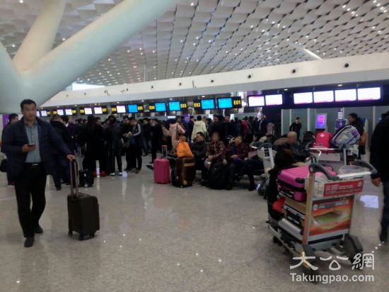 郑州机场航班大量取消、延误。大公报记者冯雷摄
