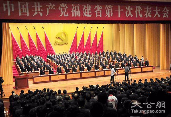 福建省第十届党代会23日上午在福州开幕。图为大会现场(大公报记者史兵摄)