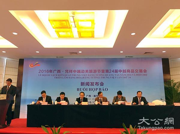 “2016广西·凭祥中越边关旅游节暨24届中越商品交易会”新闻发布会现场。 记者曾萍/摄