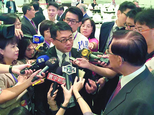 台商会长徐正文“拦截”海基会董事长田弘茂:台湾不承认“九二共识”对台商影响大。 数据图片