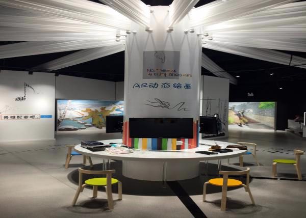 “AR动态绘画”区域内,通过让儿童手动涂色,扫描触屏,点击人物进行互动,实现拉近儿童对抗日英雄的心理距离,增加对历史人物的学习兴趣。