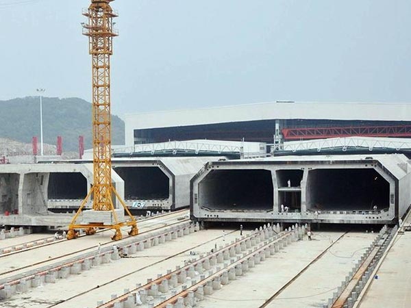 港珠澳大桥海底沉管隧道完成安装逾90%,图为沉管预制现场。
