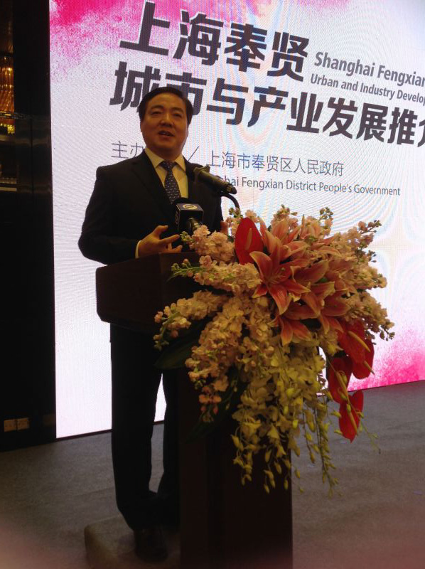 上海奉贤区区委书记庄木弟在推介会上作介绍