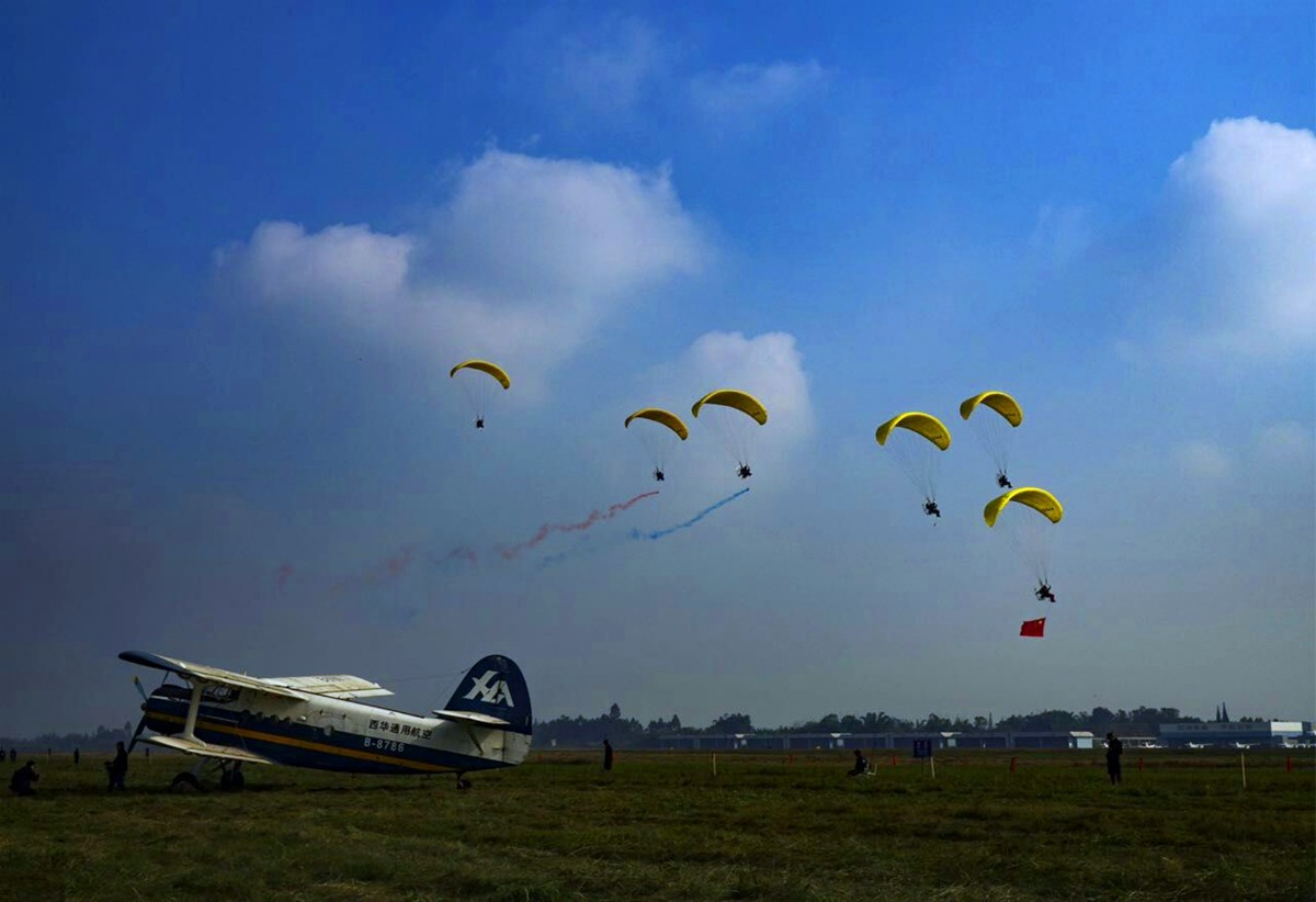大公网11月26日讯(记者李兵)11月25日至27日,2016中国国际通用航空博览会暨首届成都国际航空技术与设备展,在成都新津机场举行。来自美国、意大利、俄罗斯等海内外多国航空界知名企业及行业专家学者参会,参展飞机超200架,五支国内外飞行队进行了现场表演,迪拜喷气人在内地首秀。