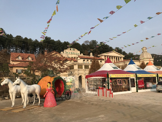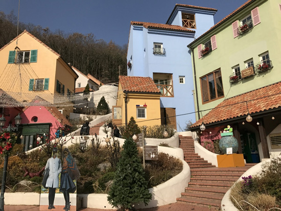 在京畿道的东边,美丽的清平湖畔有一座依山而建的法兰西文化村,它是一座由地中海风格的圆形白色房屋和古雅的欧式建筑所组成的小村庄。在进入小法国的入口,便能看见跨坐在墙上的小王子雕塑正端坐着望向游客,村子里更是能看见各种小王子有趣的壁画和雕塑,这里还专门设有《小王子》作者安东尼.圣艾修伯里的纪念馆。除此之外,还有音乐盒、西餐屋,小广场上还有提线木偶的演出,如果你想知道这些木偶是怎么被摆出各种令人捧腹大笑的动作的话,不妨坐在离舞台最近的第一排,或许演出人员会冷不丁的将木偶跳上你的肩膀跟你嬉笑玩耍。