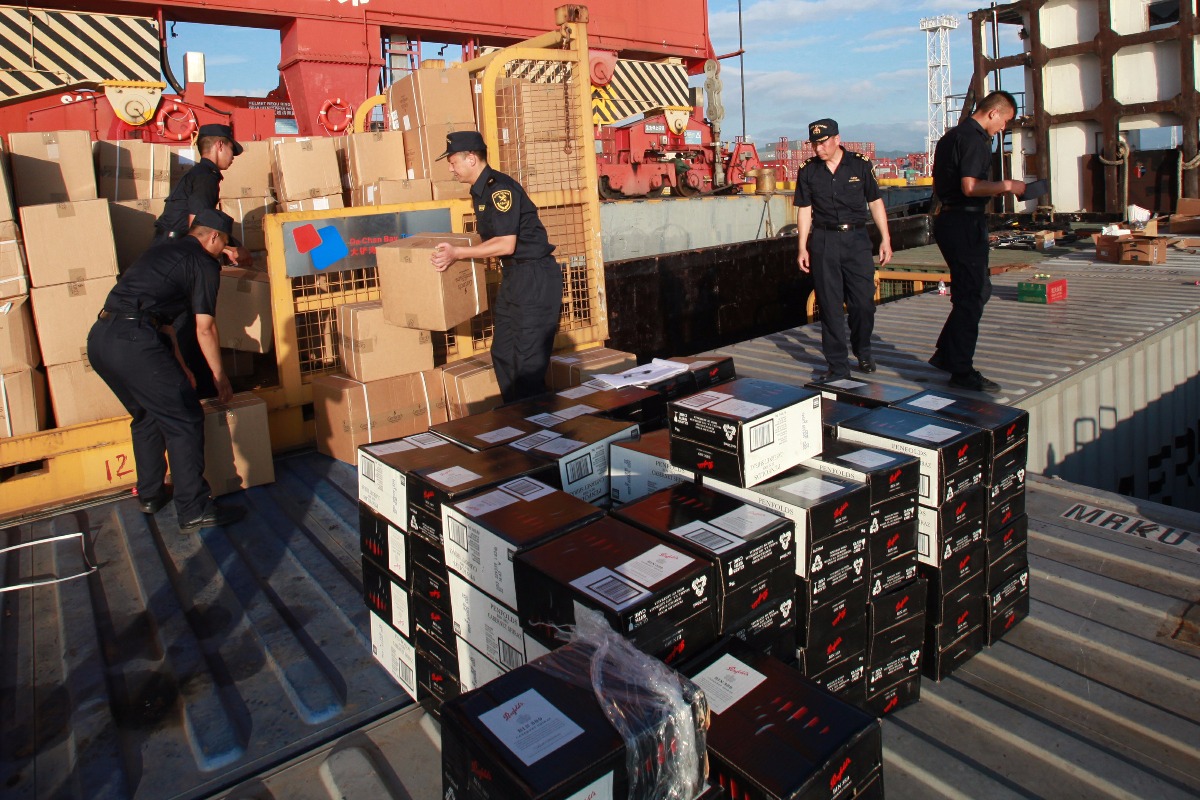 大公网11月28日讯(记者敖敏辉)28日,广州海关宣布破获一起涉横跨内地香港的特大跨境跨省走私大案,以曾某为首的团伙,利用往来港澳船舶夹藏、伪报货品名、转关调包等方式,大量走私红酒、汽配、音响等高值货物,以及军用弩、枪支等禁止进口物品。初步核查,该犯罪集团走私涉案达1.1亿元。两次行动中,该团伙34名嫌疑人嫌疑人落网,一条多团伙、多线路、多手法、跨关区的走私链条被彻底斩断。