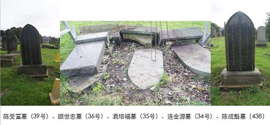 另外,经查询当地档案馆墓地资料,英国北部华人企业家协会发现这五块墓地是中国留存海外的珍贵文化遗产。该协会创会人徐雷告诉记者,资料显示其中有三座为1887年6月30日购买,共花费15英镑,墓地属于中国政府。他说,“以当时的二层带后院的房子为例,15英镑可买半栋。”
