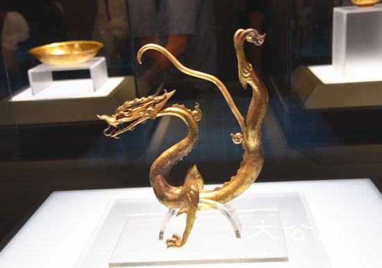 唐代遗物鎏金铁芯铜龙。
