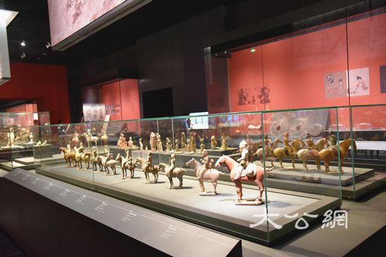 展厅里展示的众多唐朝出土文物。