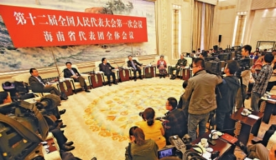 ▲6日,十二届全国人大一次会议海南代表团全体会议向媒体开放 新华社