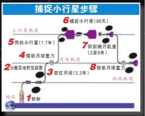 尼尔森说,不过,完成这项任务首先需要找到在重量、大小等方面符合理想条件的近地小行星。此外,捕捉小行星不但需要定位在恰当时间飞近地球的小行星,还需配备足够强大的动力推进系统将小行星带离原轨道,预料要使用离子推进器技术。