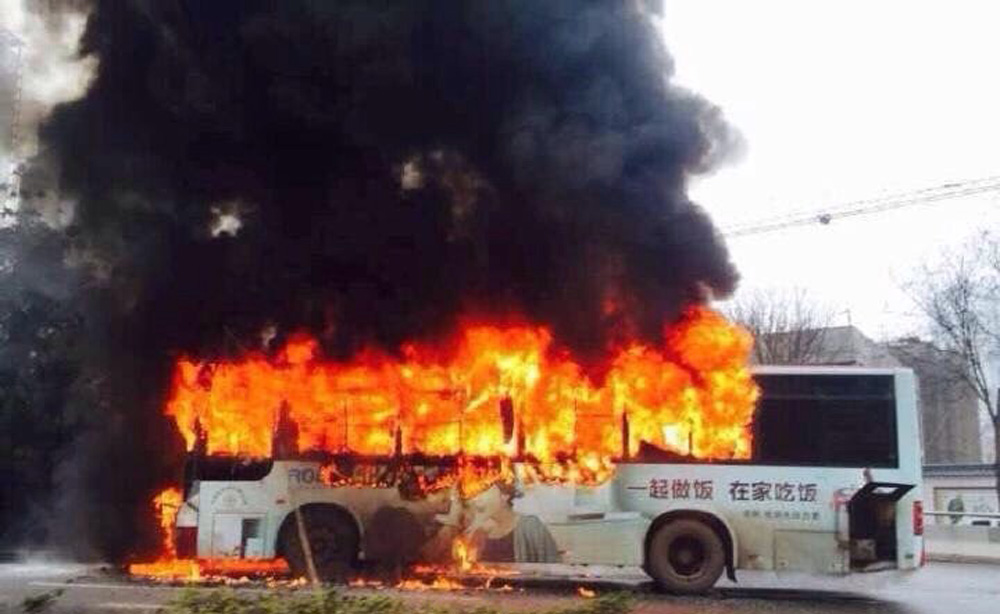 5日11:50分许,一辆自东向西行驶在西安南二环上的408路公交车突然?火。公交司机发现车上有烧焦味,打开引擎盖后发现有火苗,第一时间使用灭火器灭火,并组织20馀位乘客下车。无人员伤亡。仅仅10分钟,公交车就烧成了空架子。 (西部网)