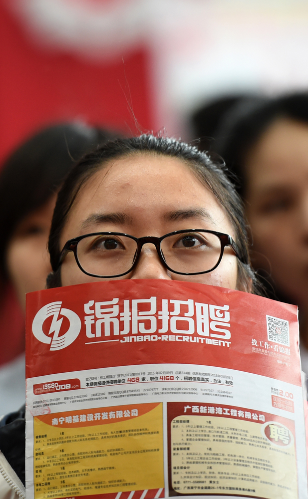 图:求职者在南宁国际会展中心人才交流大会现场寻找就业岗位\新华社
