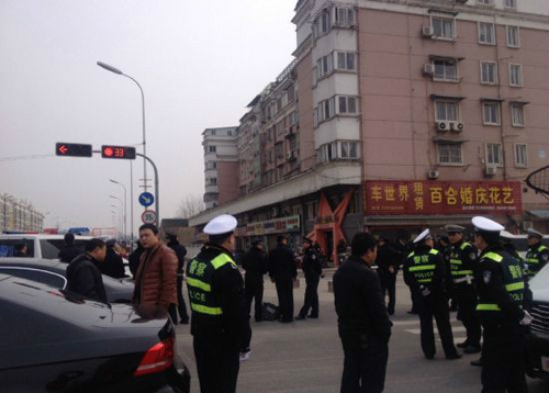 3月11日10时左右,安徽六安市发生持枪挟持人质事件。犯罪嫌疑人在逃窜到网吧过程中曾向警察射击,有两名女性路人被流弹击伤,经治疗后伤势稳定。经过近8小时的对峙后,犯罪嫌疑人屠某在警方及其家人的劝说下,主动释放人质,弃械投降。图为警察在案发现场布防 中新社