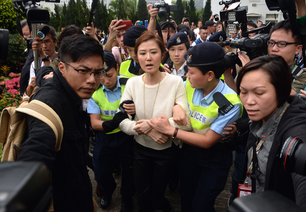 人力主席袁弥明在礼宾府内开遮闹事,被警方带离现场/本报记者林良坚摄