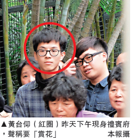 图:黄台仰(红圈)昨天下午现身礼宾府,声称要“赏花”/本报摄