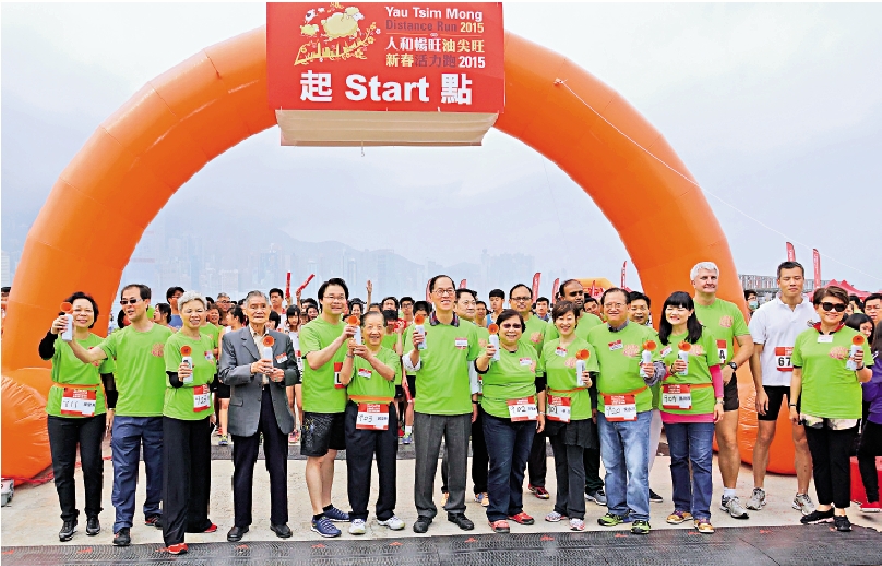 【大公报讯】“人和畅旺油尖旺新春活力跑2015”昨日于西九龙海滨长廊圆满举行,吸引超过2500人参加。是次活力跑设有个人组、亲子组及三人接力组,赛道环绕西九龙文化区。为让爱好长跑人士能与家人一同参与活动,主办单位特意于会场设置摊位游戏区及打气区,亦有充气游戏及学生表演,让到场人士一同感受热闹欢乐的气氛。
