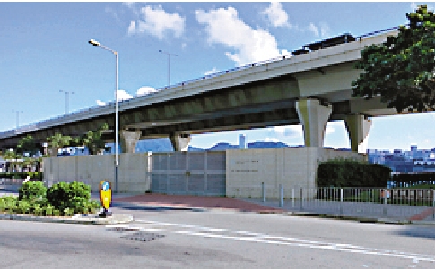 图:骏业街旱季截流器坐落在观塘海滨花园与海滨道休憩处之间,以往的围墙阻碍景观