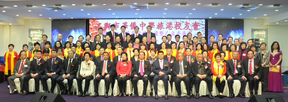 图:石狮市华侨中学旅港校友会举行第十四届董事就职典礼暨乙未年春节联欢晚会,宾主合照