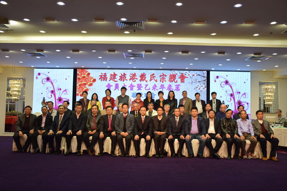 【大公报讯】记者冯玥报道:福建旅港戴氏宗亲会前晚假北角富临皇宫举行“会员大会暨乙未年春茗联欢晚会”,会长戴锦文,理事长戴小波与逾500位理监事、会员及乡亲欢聚一堂,宾主把盏,共祝国家繁荣昌盛,香港政通人和,该会会务蒸蒸日上。展望新的一年,会长戴锦文表示,二○一五年希望与挑战并存,期望各位宗亲一如以往,关心、支持和协助宗亲会拓展会务,凝聚爱国爱港正能量,为国为港为乡再作贡献。