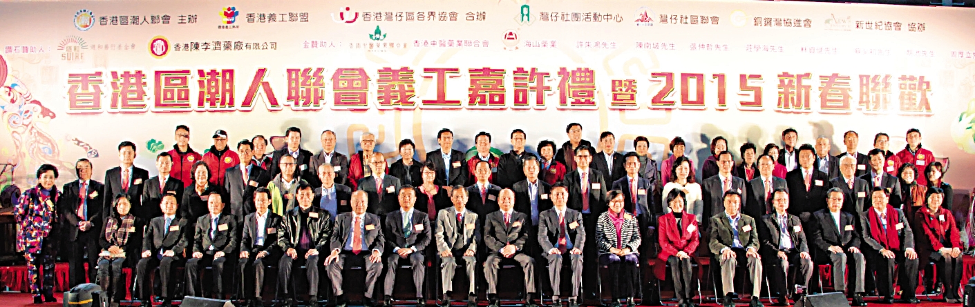 图:香港区潮人联会举行“香港区潮人联会义工嘉许礼暨2015新春联欢盆菜宴”,宾主合照