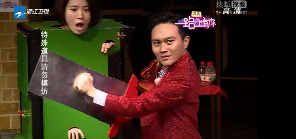 第三关是玩魔术。ChiLam自选表演刀锯靓靓,他爆笑地说:“我很想切她一下。”只见ChiLam鸡手鸭脚地撞跌刀片,靓靓立即做出痛苦表情,相当搞笑。最后一关是摔跤,ChiLam和摔跤少年扭斗。四个回合下来,ChiLam和靓靓以总比数胜出,又做大赢家。