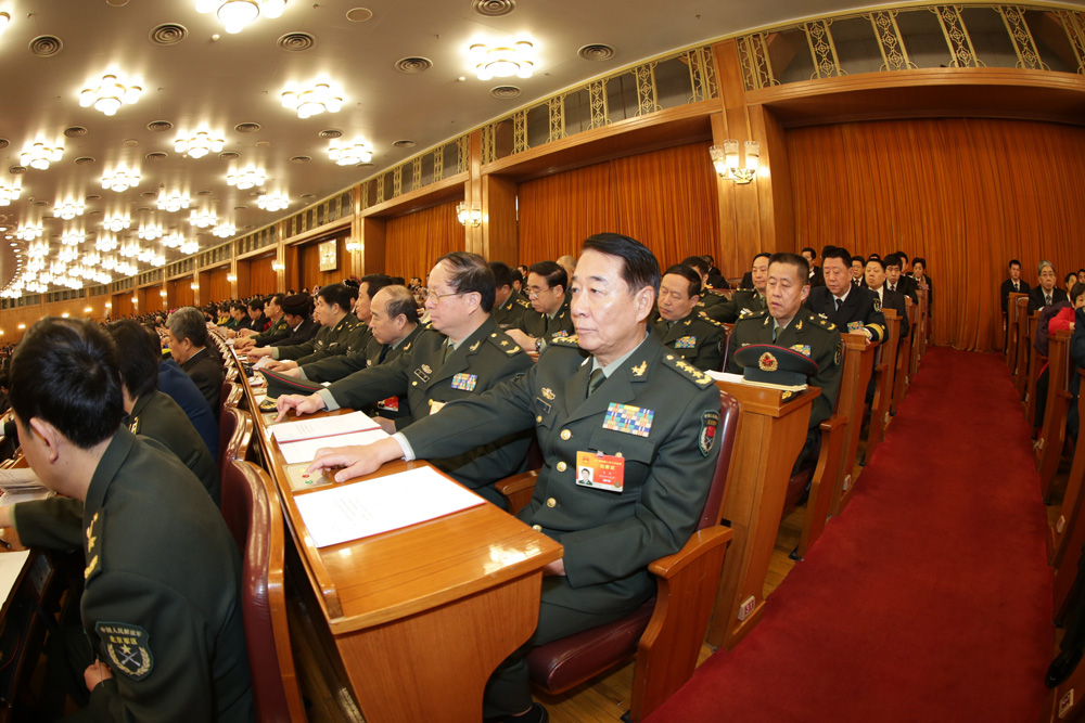 图:3月15日,解放军代表在第十二届全国人民代表大会第三次会议上表决/新华社