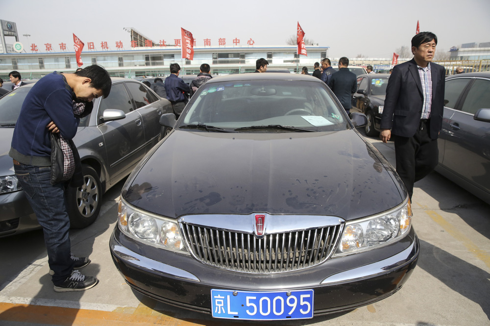 3月15日,北京市民在拍卖会预展上参观车辆。当日,第二轮“中央和国家机关公车改革取消车辆”在北京进行预展,18日起将分四场拍卖会开槌拍卖。据悉,这次拍卖不仅首次出现奔驰、林肯、凯迪拉克、宝马等外事用车,还首次出现了越野车。 中新社