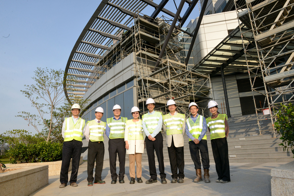 图:邓国威(右四)到访位于屯门稔湾的污泥处理设施