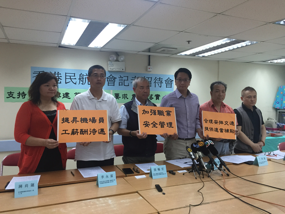 图:工联会属下工会促请政府加强机场人力资源规划,改善人手荒的情况 /本报记者彩雯摄
