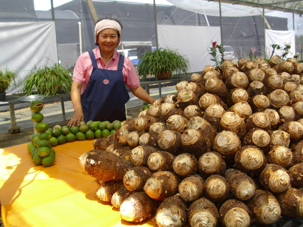 迈入第17年的屏东县九如乡北玄宫台湾兰花节,今年发扬无毒农特产品,利用乡产千斤无毒芋头与柠檬堆叠出龟蛇将军。 中央社