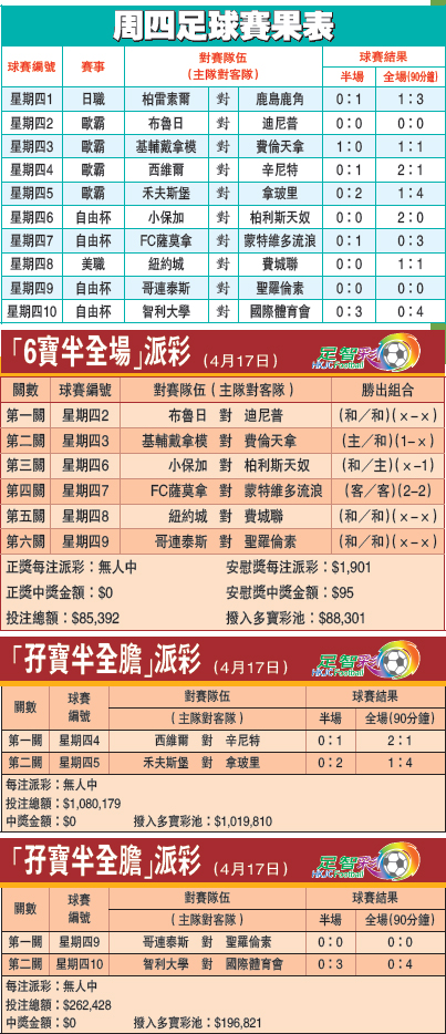 周四足球赛果表