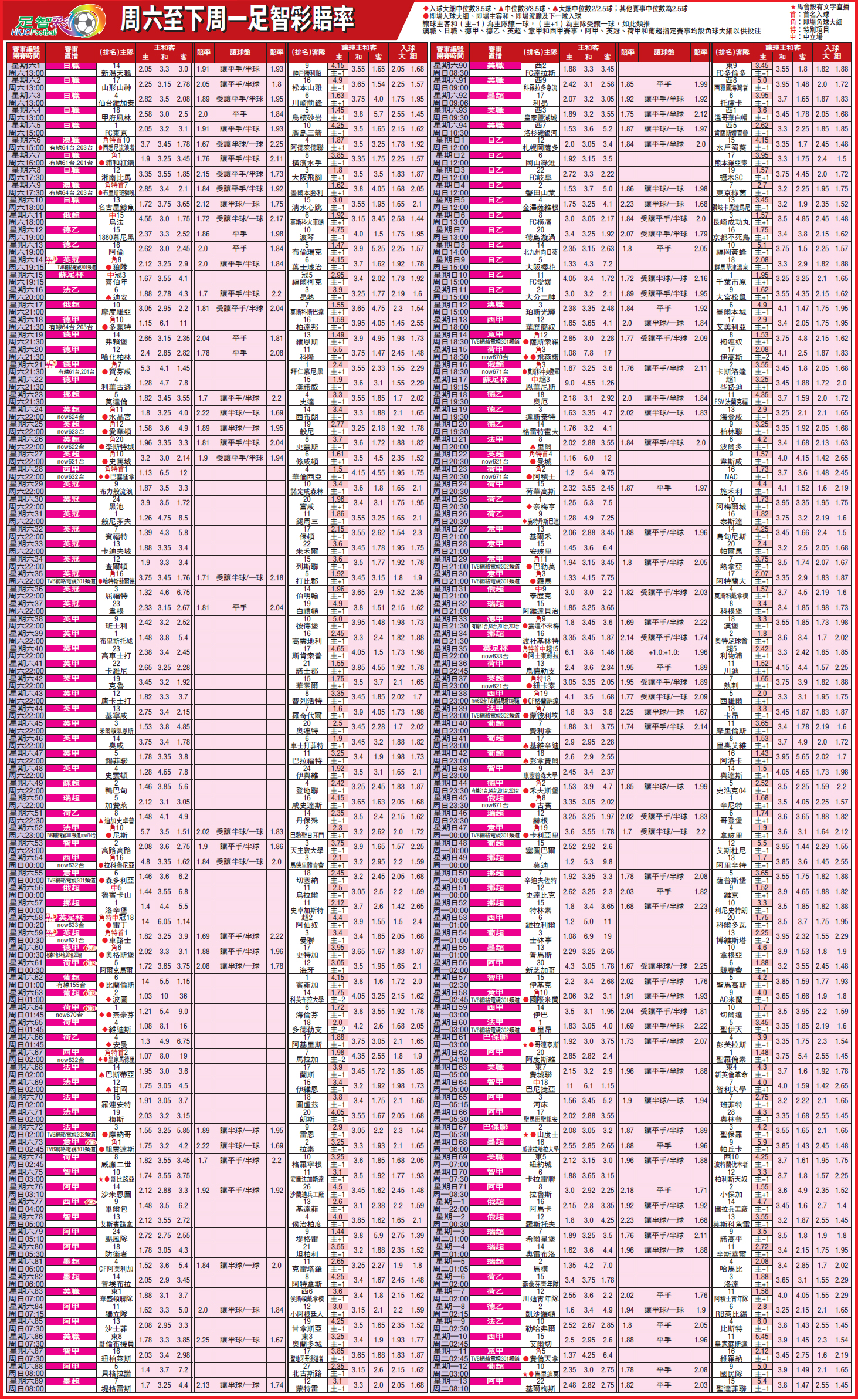 周六至下周一足智彩赔率
